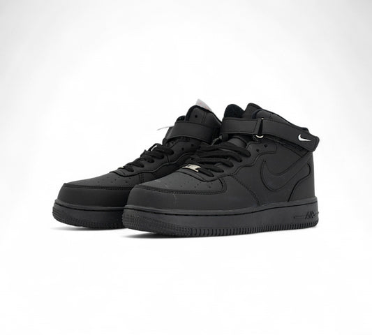 Nike Air Force 1 Mid FUR – All Black Edition with White Accent Z